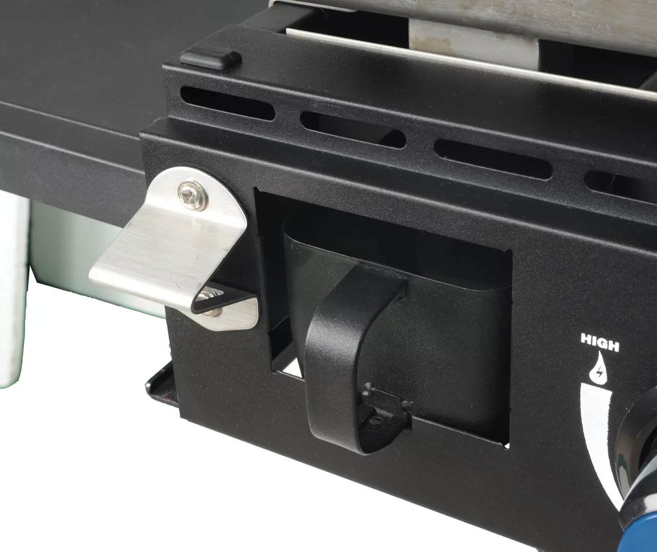 - Side shelf offers extra space for food prep while cooking