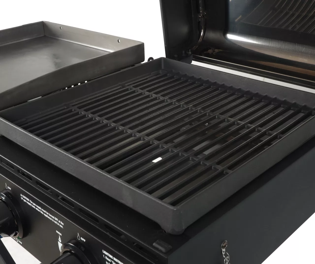 - Combination outdoor gas grill and griddle with 4 burners