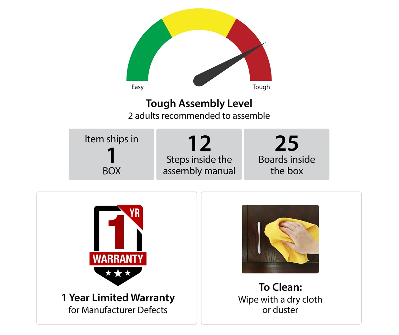 - Each side cabinet features 2 – shelves for storing accessories, DVDs and more
