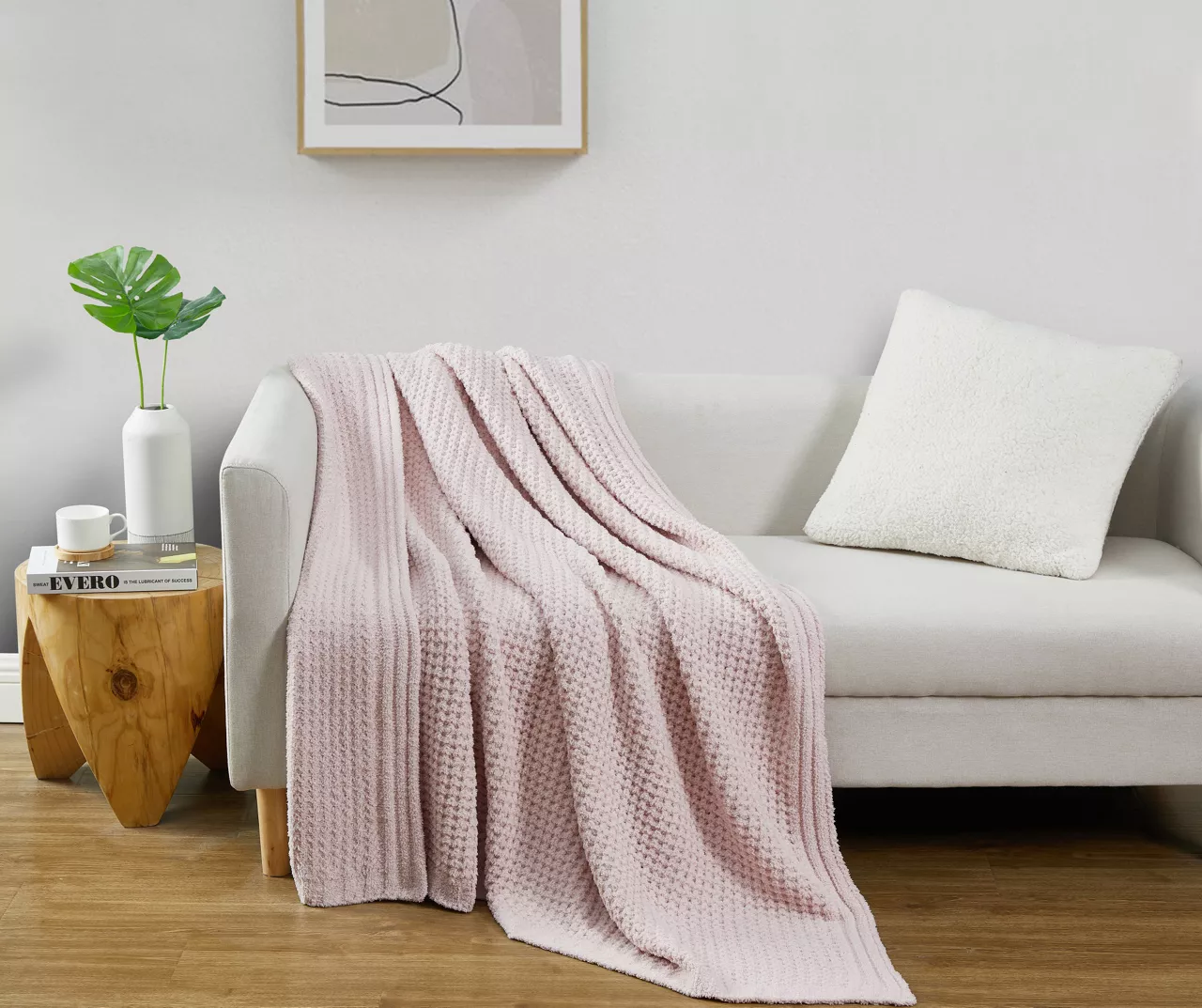 Designed with a textured waffle knit, this cozy throw from Broyhill provides soft warmth and elegant style in any bedroom, living room or office space, and the solid blush color is easy to coordinate with many décor styles.