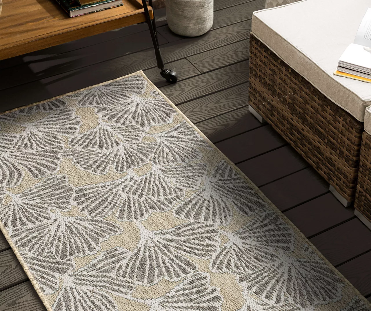 The Mohawk Home Treasured Garden area rug features a botanical design in a neutral palette of beige, tan and gray that easily blends with decor. Made with all-weather olefin polypropylene yarn, this flatwoven area rug offers a detailed design, soft feel and dependable durability that works in both indoor and outdoor spaces. The resilient surface fibers are resistant to stains, fading and moisture, making it a great choice for high-traffic areas.
