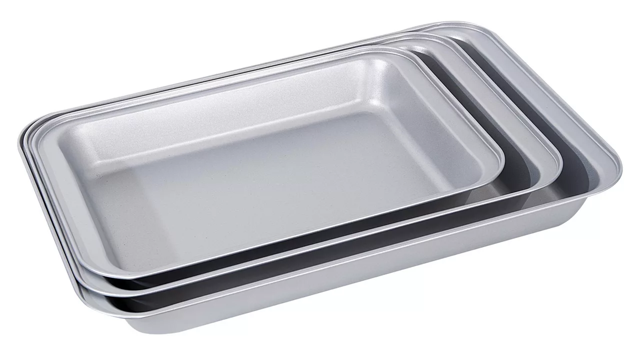 Offering a variety of sizes to suit your needs, this carbon steel pan set helps you create evenly cooked and savory roasts and makes for a great addition to your bakeware collection.