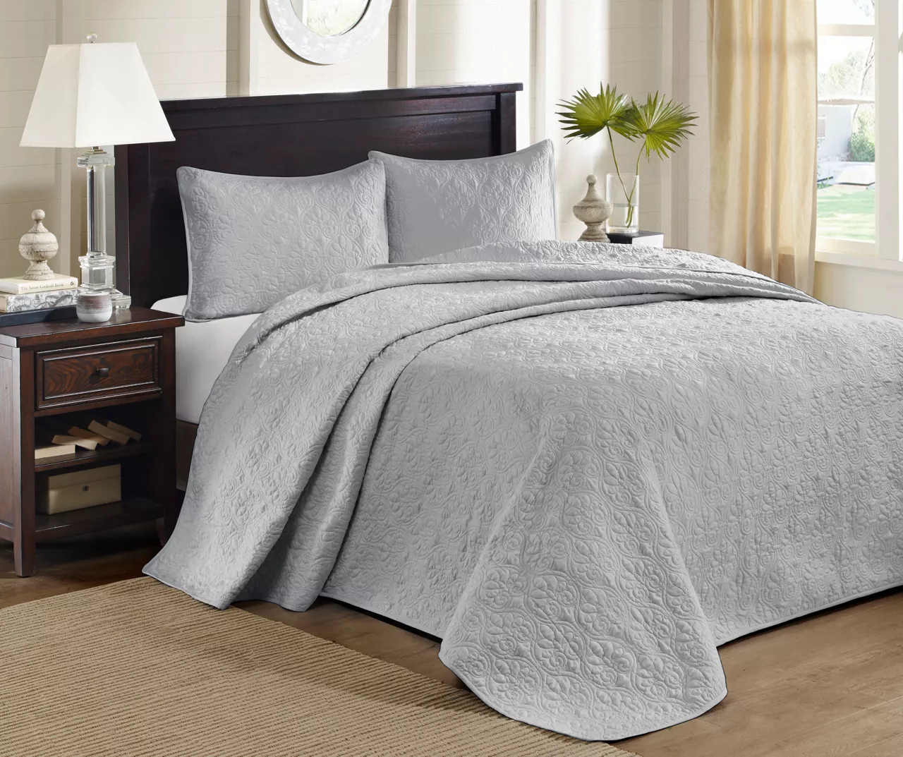 The Vancouver bedspread set offers a charming cottage-inspired update to your bedroom. The reversible bedspread and shams flaunt a classic stitch pattern that creates a rich depth and texture on the face of the bedding set. Prewashed cotton filling provides added comfort and durability, while the oversized dimensions allow the bedspread to drape better. The bedspread also has an antimicrobial treatment that helps provide built-in freshness protection to keep fabric lasting longer.